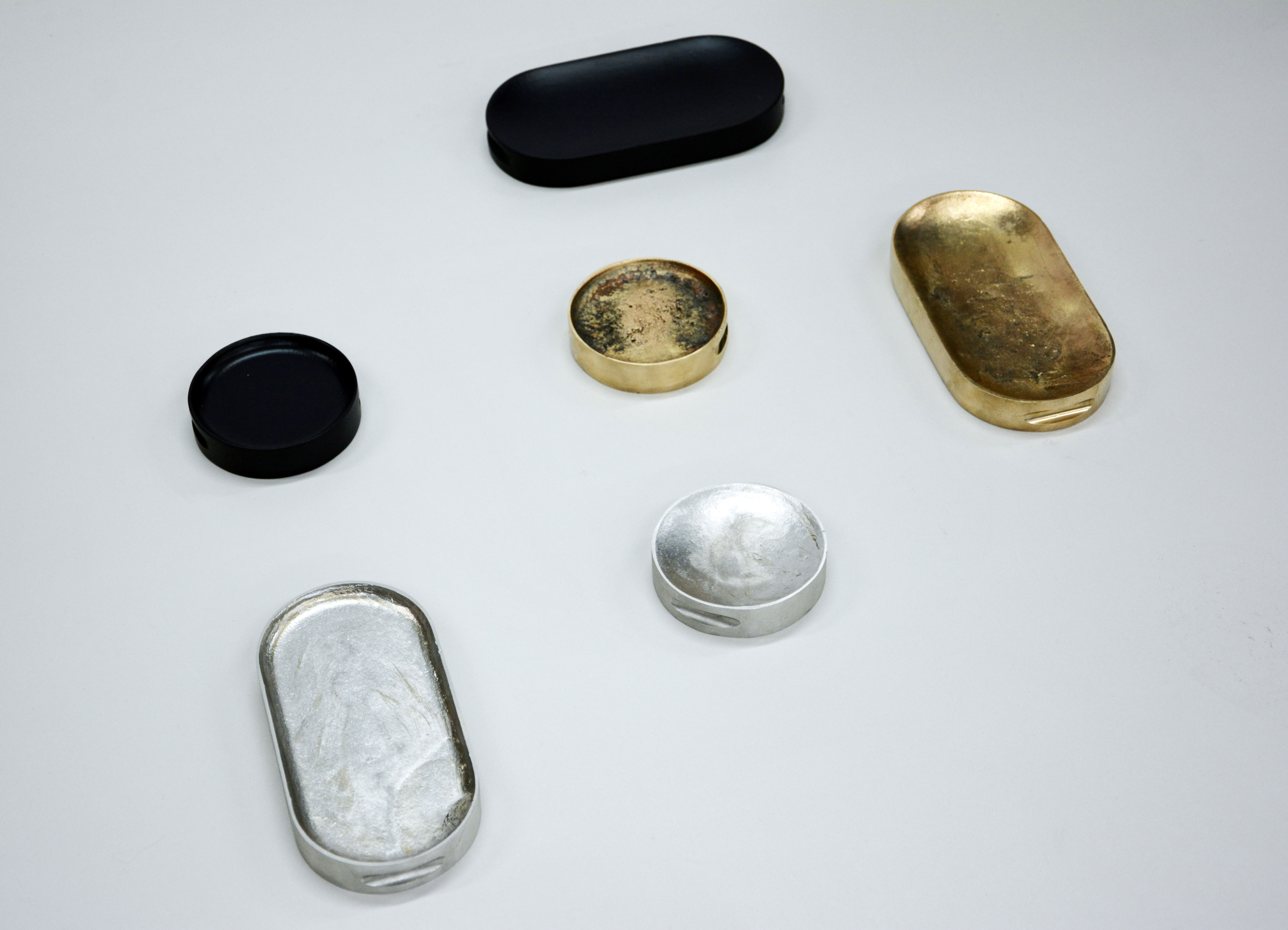 The trays are available in three different materials and finishes, Coloured, Aluminium and Bronze, each having unique surface textures.