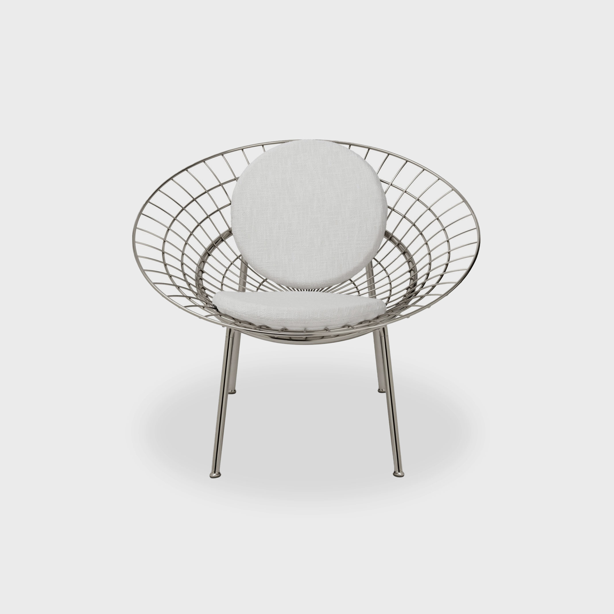 Bell shaped frame and soft round upholstered cushions. Produced in a wire specialist factory.